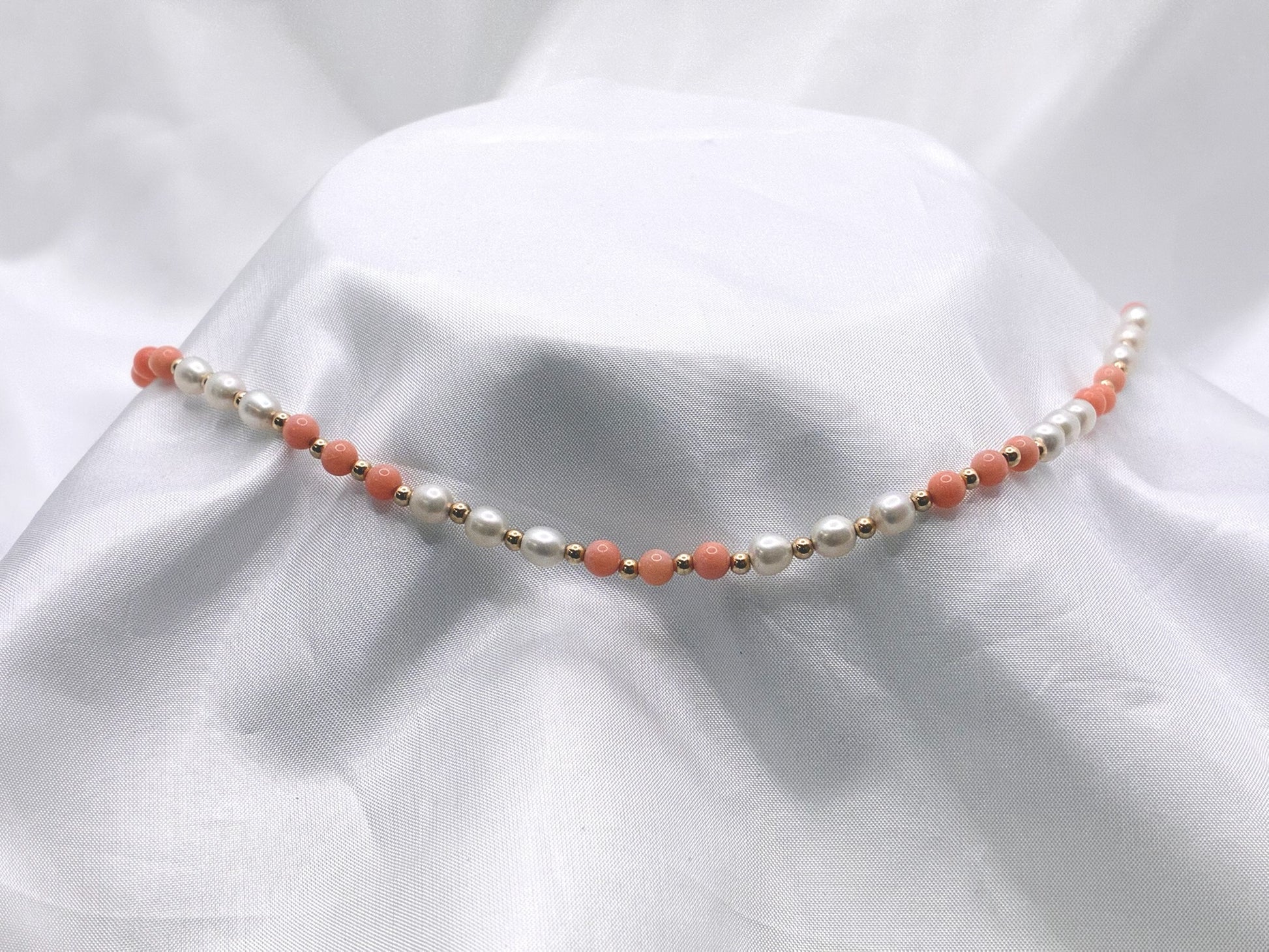 18'' Pearl And Coral Necklace With 9ct Gold Beads And 14ct Gold Clasp