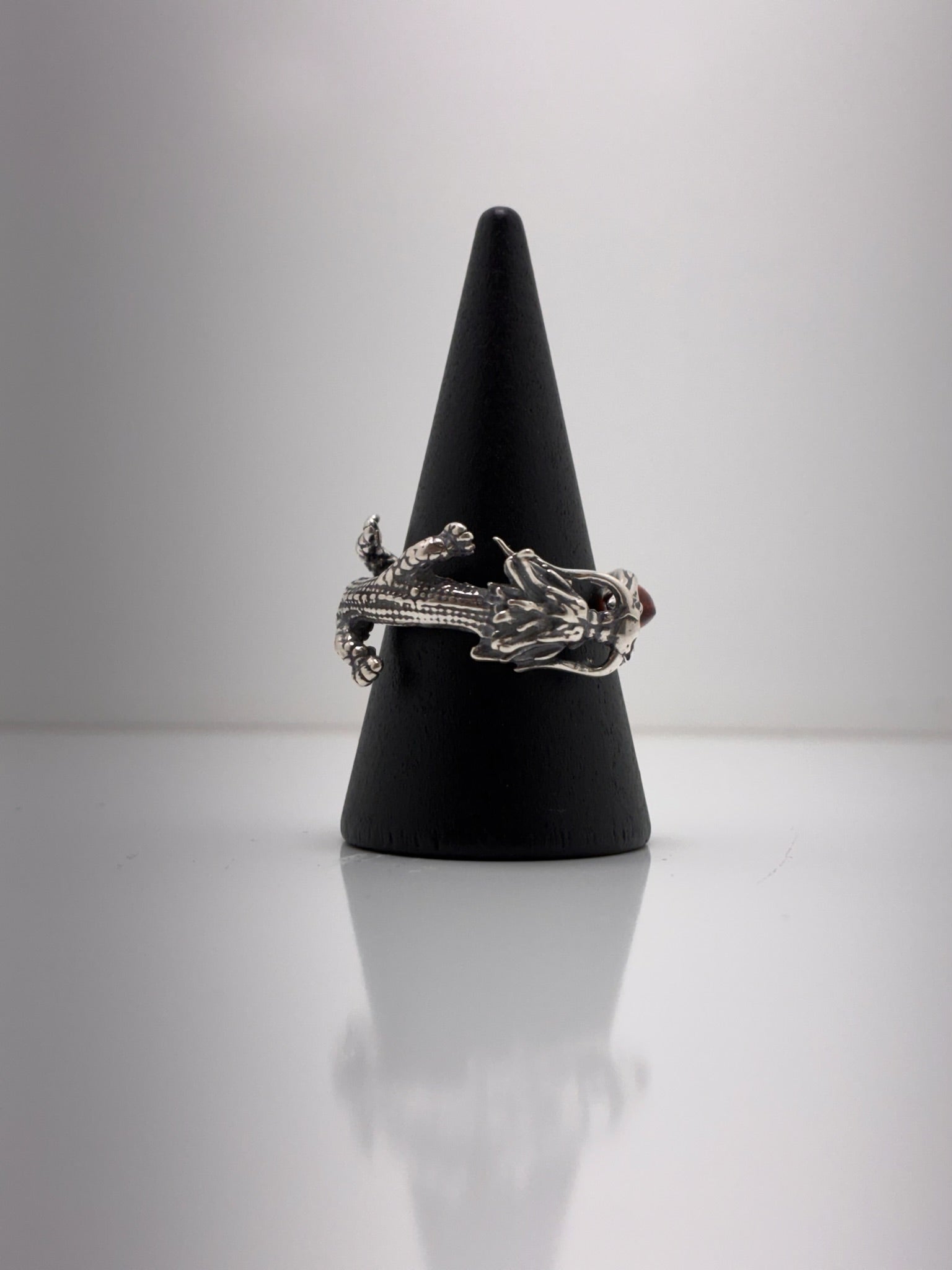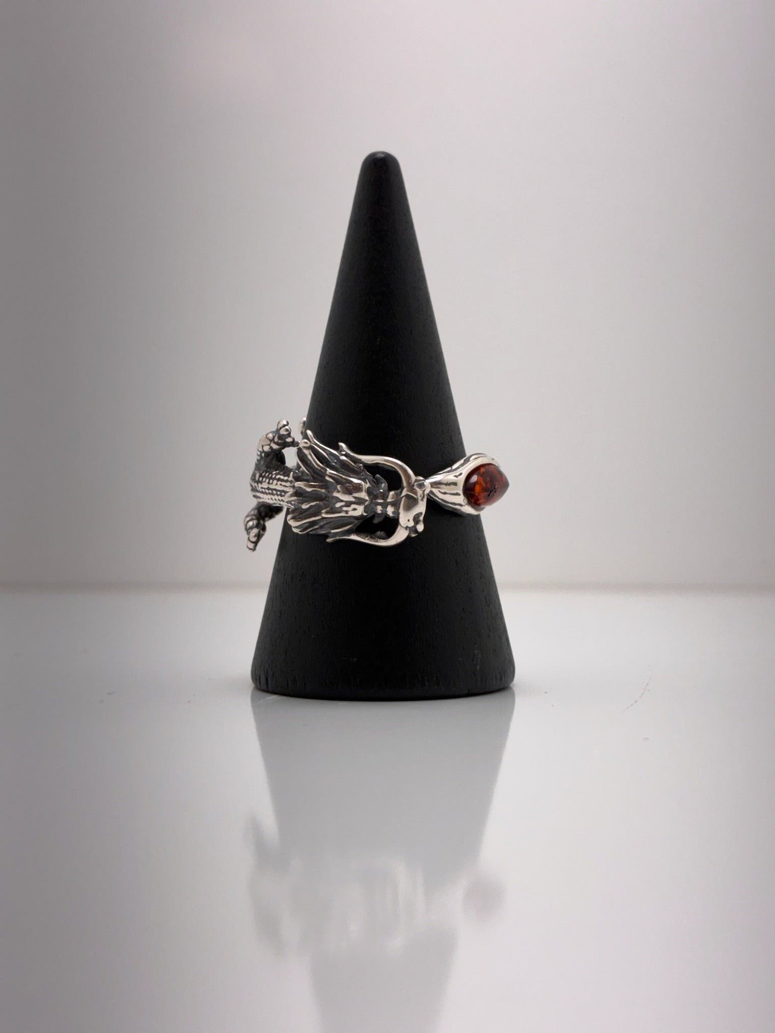 Sterling Silver Dragon Amber Ring