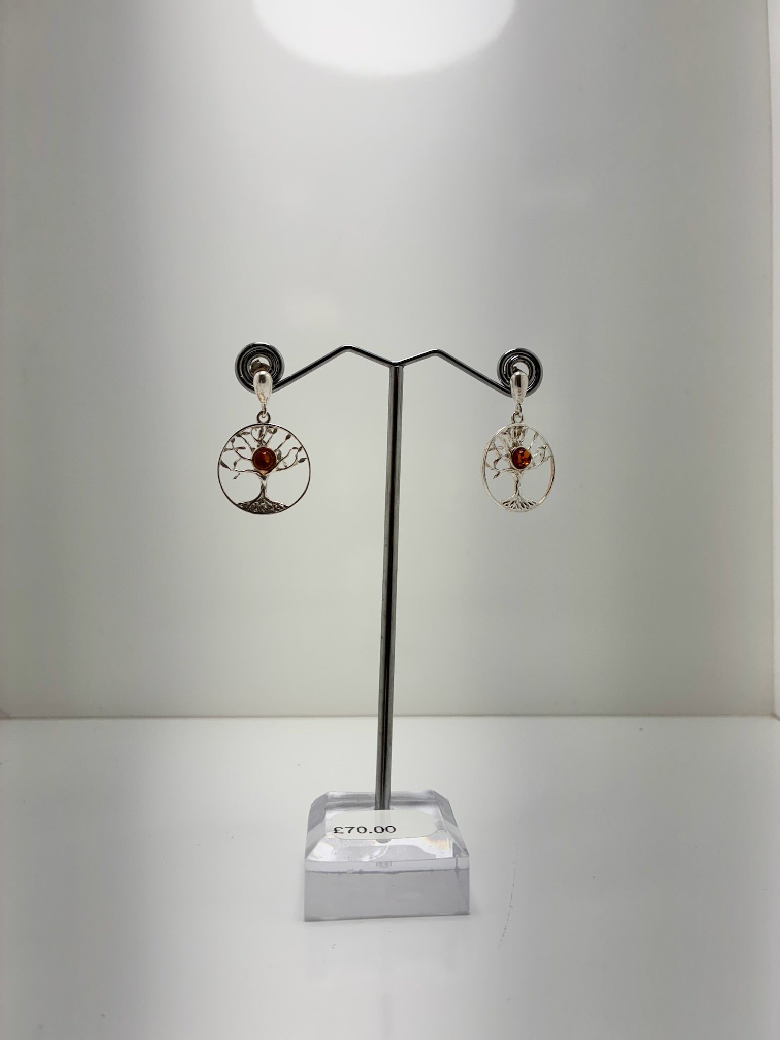 Sterling Silver Tree Of Life Amber Earrings